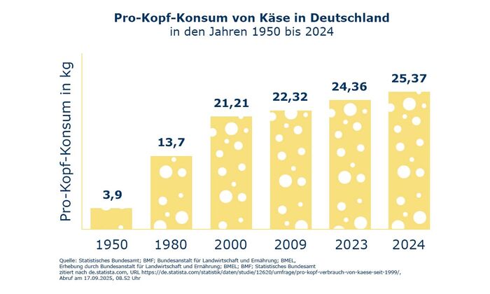 So viel Käse wird pro Jahr in Deutschland hergestellt. Das ist nach den USA der zweite Rang weltweit!